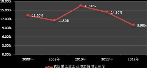 Heavy industrial production mainly for the production of information, is an important reference for Chinas economic growth based on macroeconomic growth is the main driving force to promote. From Table (a) can be seen by the European debt crisis, global inflation and other factors affecting the world economy, Chinas heavy industry growth momentum continued to decline. In 2012, Chinas heavy industrial added value growth rate for the first time fell below 10% to 9.90%, lower than the growth rate of industrial added value of Chinas overall 0.1 percent.